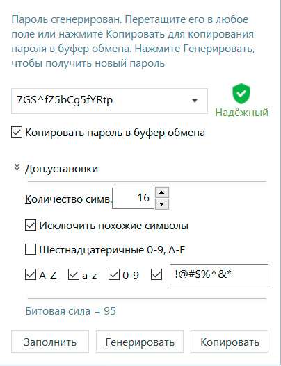 Конечно, наиболее устойчивым будет пароль, составленный из случайного набора букв в различном регистре, цифр и спецсимволов, - например, вот такой: UB^hRh%GDrSTUso8. Генераторы паролей, обязательно входящие в состав любого менеджера паролей, всегда предоставляют возможность пользователю регулировать параметры создаваемого пароля.
