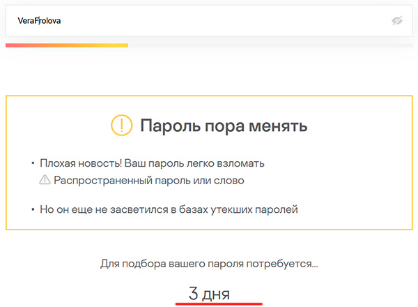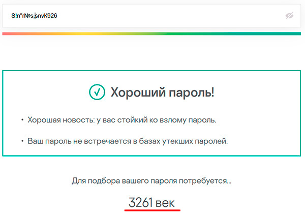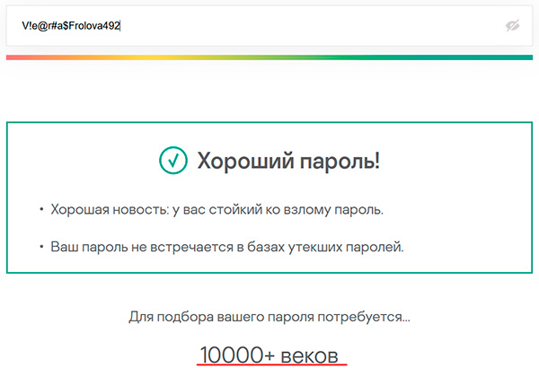 устойчивыйпароль --> Ваш пароль не встречается в базах утекших паролей. Для подбора вашего пароля потребуется...10000+ веков