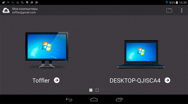 Но еще интереснее здесь реализован доступ через планшет, который может работать как на айпэде, так и на любом планшете с Android. И тут схема работы заметно отличается от того, что для планшетов предлагает TeamViewer.