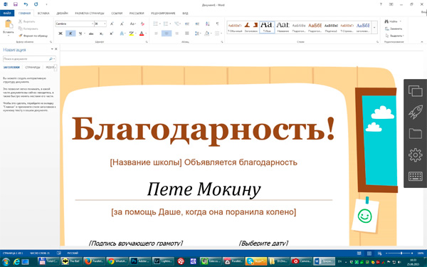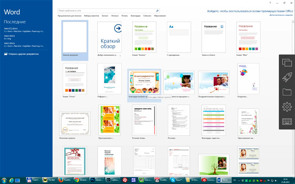 Во время работы с приложениями справа всегда присутствует небольшая панель с пиктограммами.