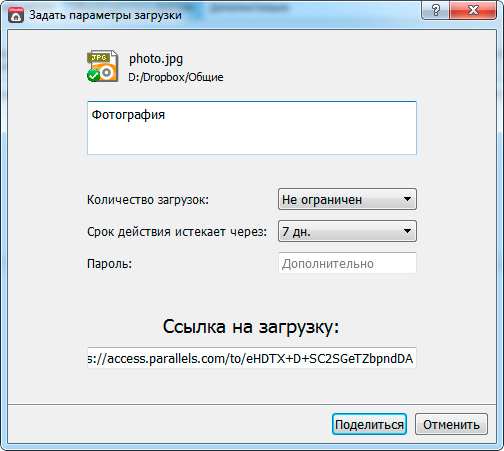 Также с помощью десктопного клиента вы можете дать доступ к любым вашим файлам (например, видео, фото), причем этот доступ гибко настраивается: ограничивается количество загрузок, срок действия ссылки, ну и вы можете задавать пароль для доступа к данному файлу.