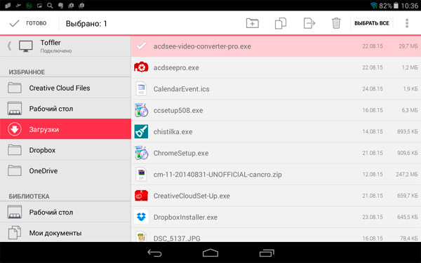 Третья пиктограмма - удобный файловый менеджер, который позволяет просматривать и копировать файлы не только на удаленном компьютере, но и на всех подключенных к нему внешних устройствах (флешках, внешних дисках) и даже подключенных облачных сервисах!
