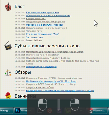 Включенный курсор мыши с эмуляторами нажатий левой и правой кнопок.