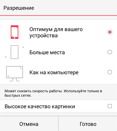 Ну и самый интересный момент - выбор разрешения экрана (масштаба отображения). Тут три варианта: оптимальное разрешение, которое подбирает программа, режим "больше места" - это когда в разрешение экрана планшета экран компьютера укладывается целиком, даже если у него больше разрешение, ну и режим "как на компьютере" - это когда разрешение компьютера дается один в один, то есть если у планшета разрешение экрана меньше, то окно компьютера придется скроллировать.