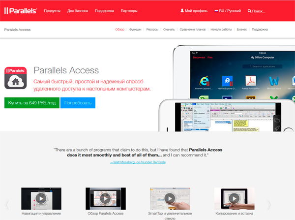 Небезызвестная компания Parallels, известная прежде всего своей программой Parallels Desktop (запуск Windows на компьютерах Mac), не так давно выпустила новый продукт - программу удаленного доступа Parallels Access.