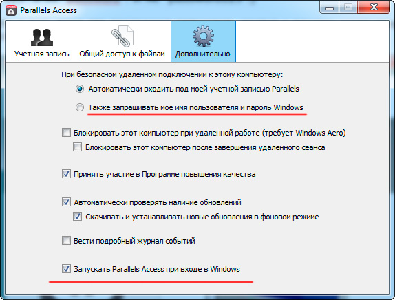 Обратите внимание на настройки приложения (вкладка "Дополнительно"). Там можно выключить опцию автоматического запуска приложения при загрузке Windows (чтобы, например, запускать его только вручную), также можно выбрать дополнительный запрос вашего логина-пароля в системе - для безопасности.