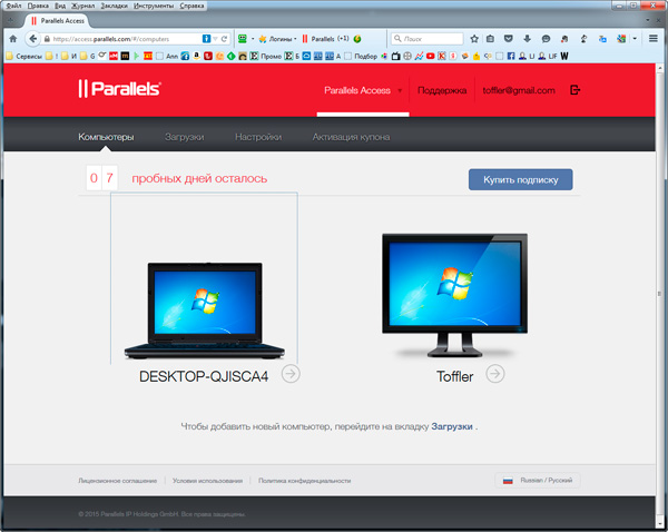 Открываете браузер, заходите на сайт Parallels Access в раздел идентификации, вводите ваши учетные данные. И в окне появляются все доступные вам компьютеры.