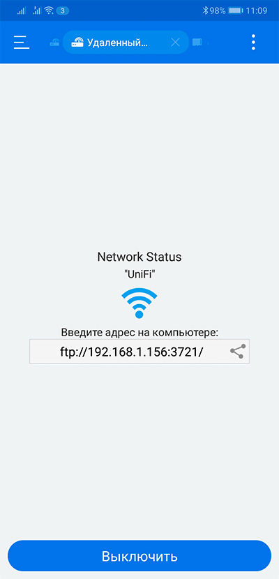 И там вам напишут адрес, который нужно вбить на ПК в окне проводника, чтобы работать с памятью смартфона как с обычным диском.