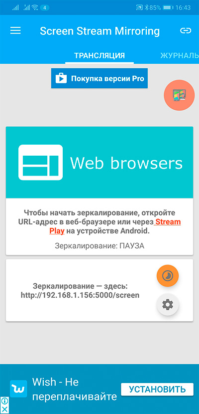 Она умеет передавать поток со смартфона на монитор (через веб-браузер), медиаплееры, устройства Chromecast, UPnP, DLNA и Miracast.