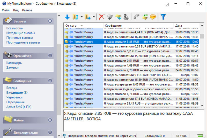 Все SMS. Программа умеет сохранять в своем архиве те SMS, которые вы удалили с телефона.