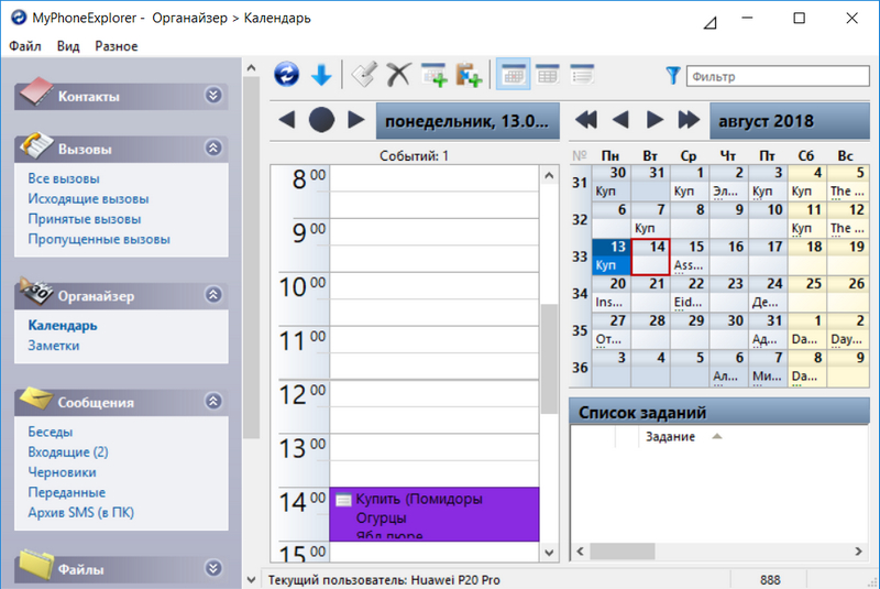 Ну и с календарем тут можно работать - просматривать события, добавлять новые и так далее.