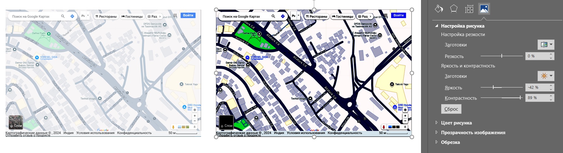 Но если нужно сделать для кого-то, кто нуждается, бумажный бэкап гугл мэпс 😄 выручает формат рисунка в ворде (яркость и контраст по вкусу):