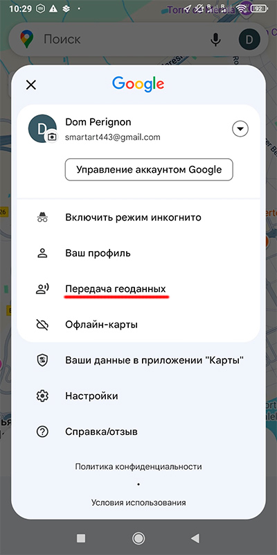 Как это делается? Нажимаете на свой значок профиля в картах Google, там пункт "Передача геоданных".