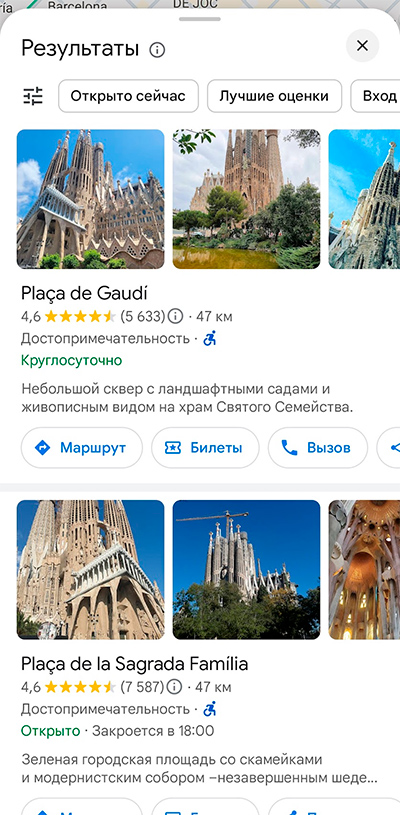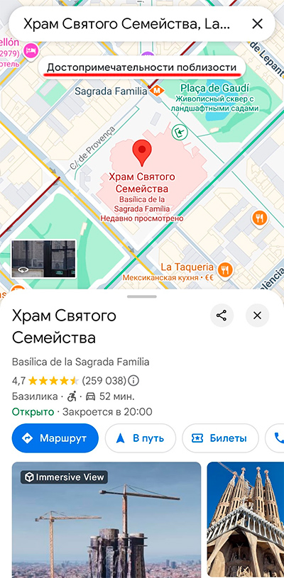 Если вы путешествуете по всяким новым местам, то имеет смысл пользоваться возможностью Карт Google под названием "Достопримечательности поблизости".