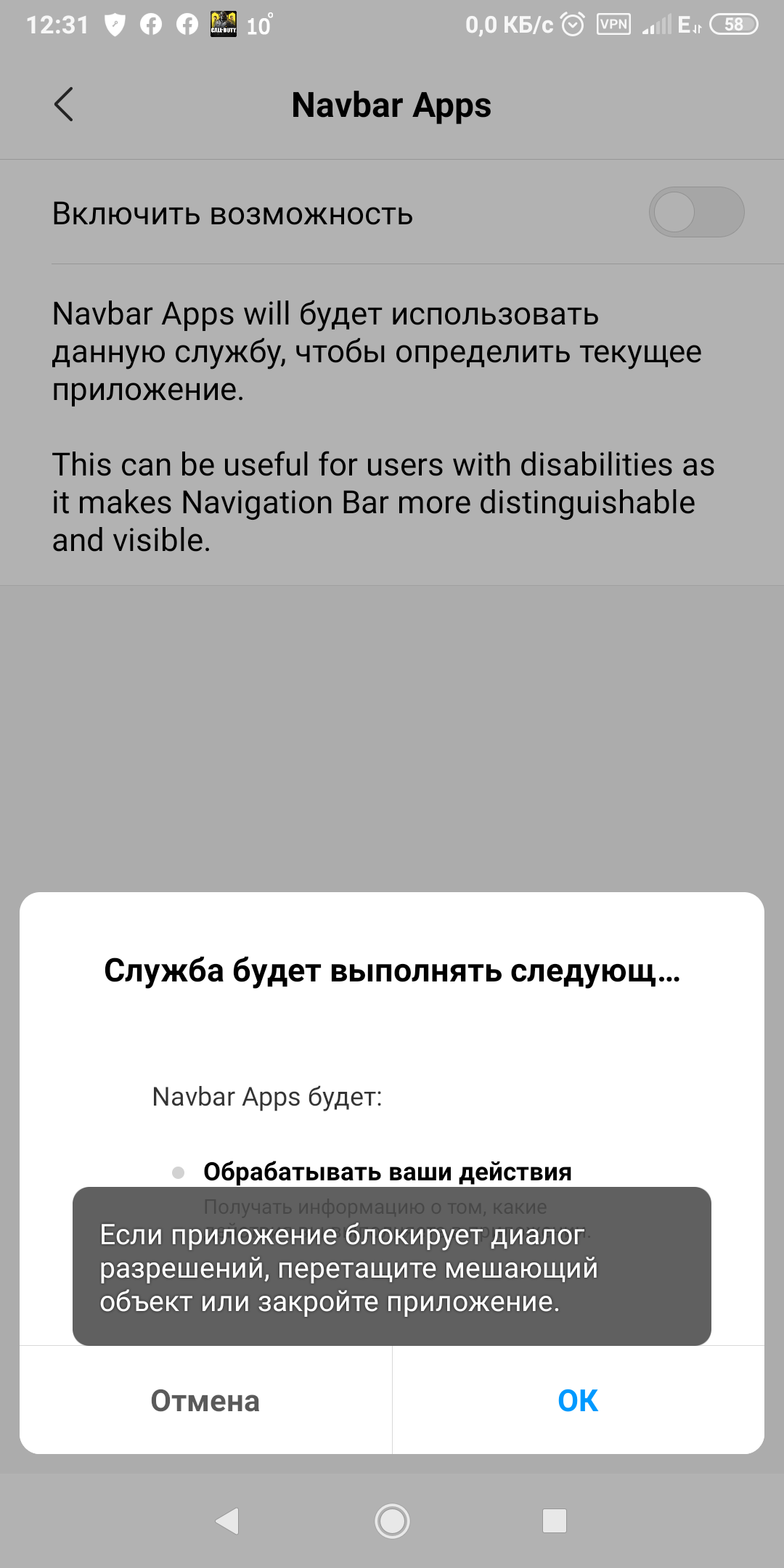 3. Отключен мобильный интернет