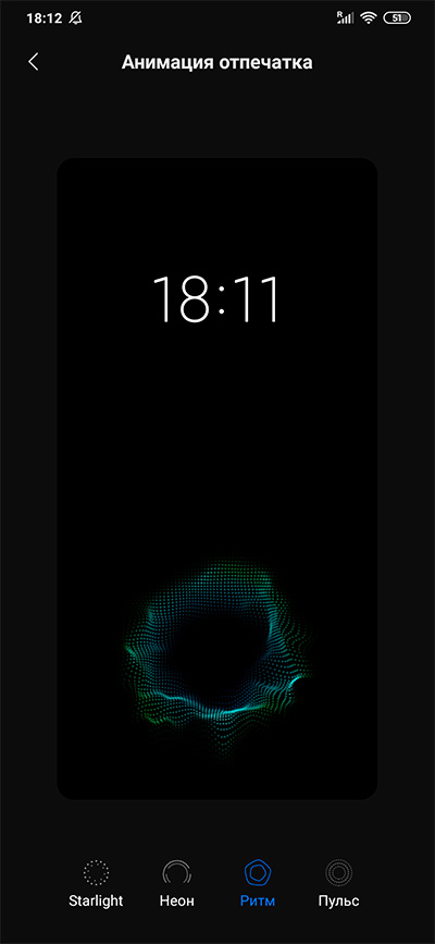 Если у вас сканер отпечатка пальца встроен в экран, то там можно настраивать анимацию при разблокировке. "Настройки - Блокировка и защита - Управление отпечатками - Анимация отпечатка".