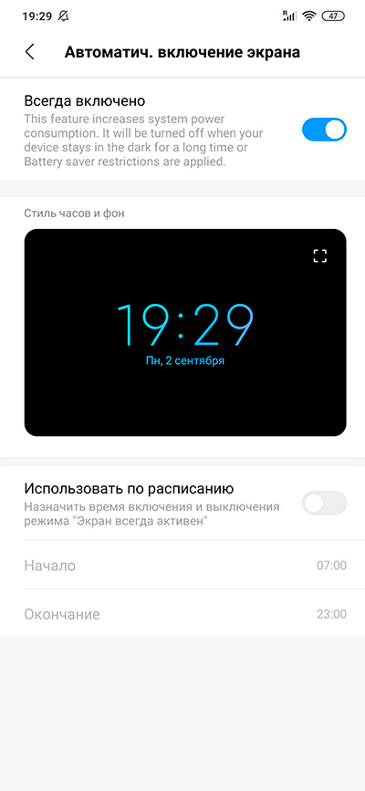 5. Постоянно включенный экран