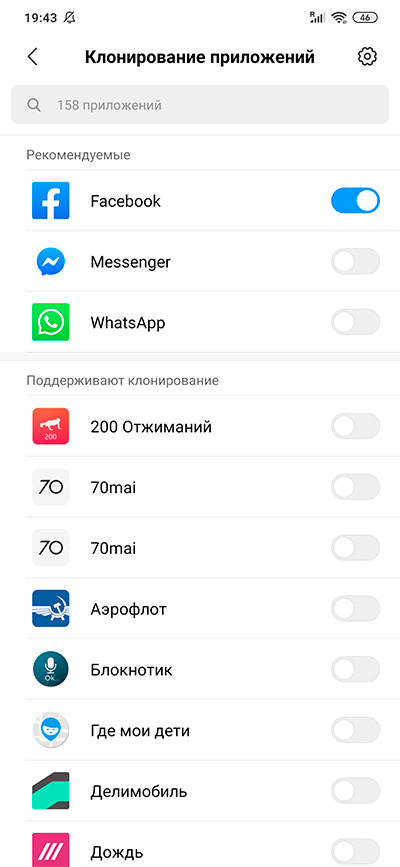 Очень удобная опция для тех, кто использует два разных аккаунта одного приложения - Facebook (личная страничка, страничка фирмы), Whatsapp (личный и рабочий мессенджеры) и так далее. При включении этой опции смартфон создаст приложение-клон, которое можно отдельно настраивать.