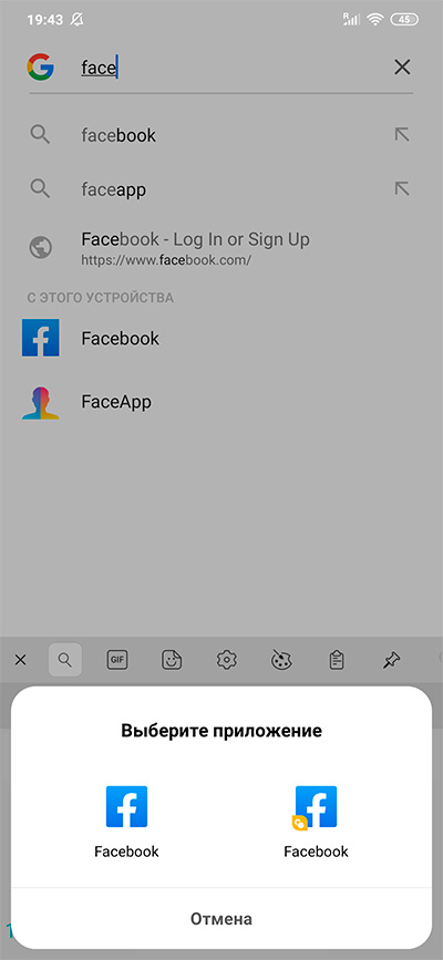 При запуске приложения после этого будут спрашивать, какое именно приложение запускать - основное или клон.