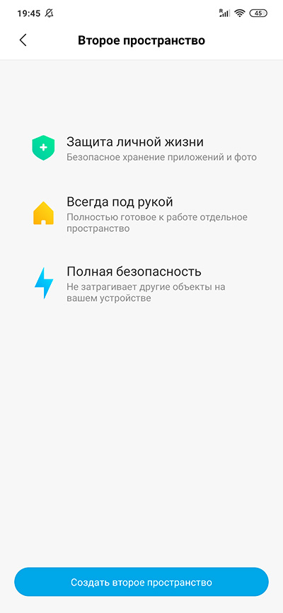 У смартфонов Xiaomi есть такая интересная возможность, как создание второго пространства - читай, профиля. Что это означает? Это означает, что в смартфоне живут два непересекающихся пространства - со своими установленными приложениями, мультимедиа и так далее. При создании второго пространства по отношению к первому оно будет выглядеть как смартфон, в котором сделали сброс к заводским настройкам. Как это можно использовать? Ну, например, для создания профиля, в котором будут храниться секретные данные. Например, первое пространство - для всех, телефон при этом можно давать пользоваться коллеге по работе или ребенку, а вот второе - только для себя. Доступы в первое и второе пространства паролятся, также можно задать доступ по отпечатку пальца.