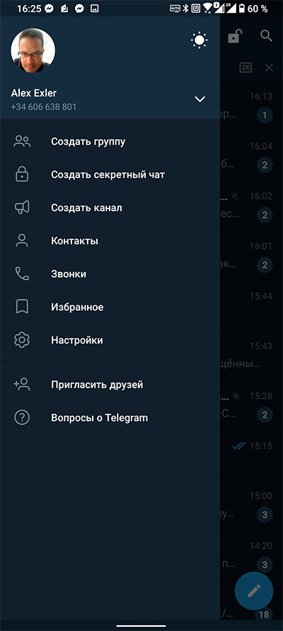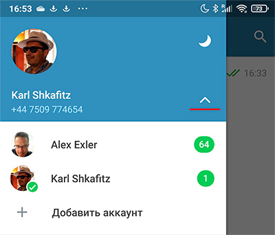 Многие люди используют не одну учетную запись в Telegram: например, личную, рабочую и секретную. И все эти учетные записи (ну, точнее, три из них) вы можете подключить в одном приложении, переключаясь между ними одним щелчком. Это делается в меню приложения: справа в строчке аккаунта нужно нажать стрелку.
