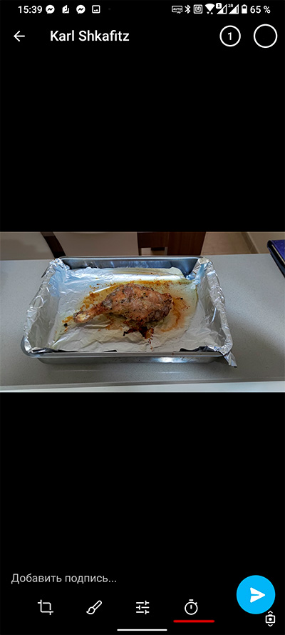 Делается это следующим образом. Нажимаете на скрепку, выбираете фото из галереи, щелкаете по фото (это важно, потому что можно отправить, просто отметив фото из галереи), попадаете в окно редактора (обрезать, изменить настройки). И вот там есть значок секундомера, на который обычно никто не обращает внимание. А зря, ведь это возможность самоуничтожения изображения через некоторое время после его просмотра (именно после просмотра, а не отправки).