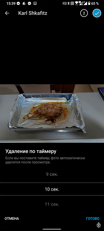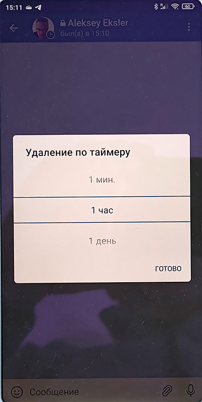 Мало кто знает, что вы можете задать автоматическое удаление отправленного фото и видео в обычном чате (в группах и "Избранном" это не работает).