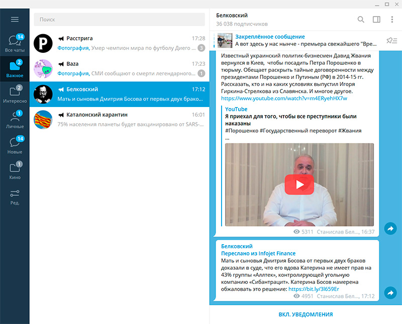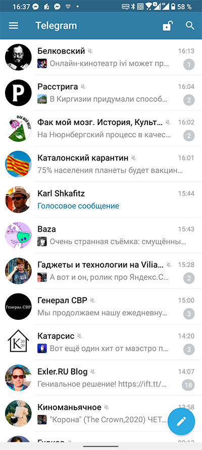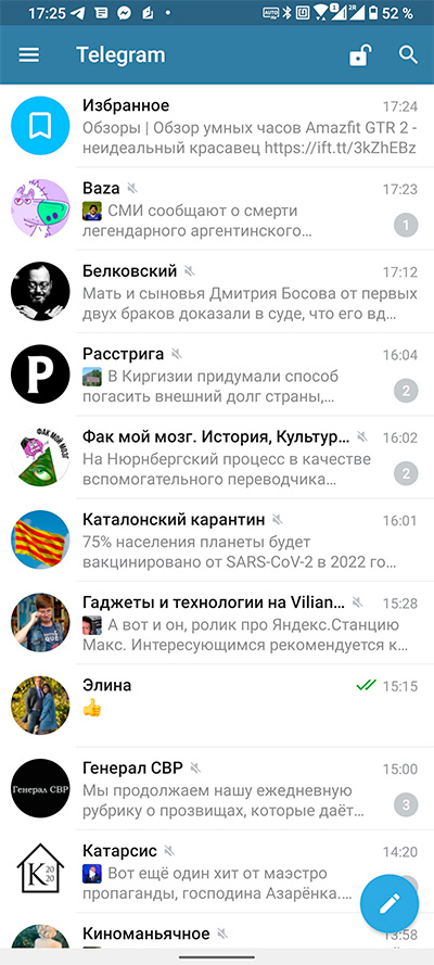 У меня практически все читаемые телеграм-каналы - с отключенными уведомлениями. Я в списке вижу, в каких каналах появились новые записи, и, когда у меня появляется время, захожу их почитать.