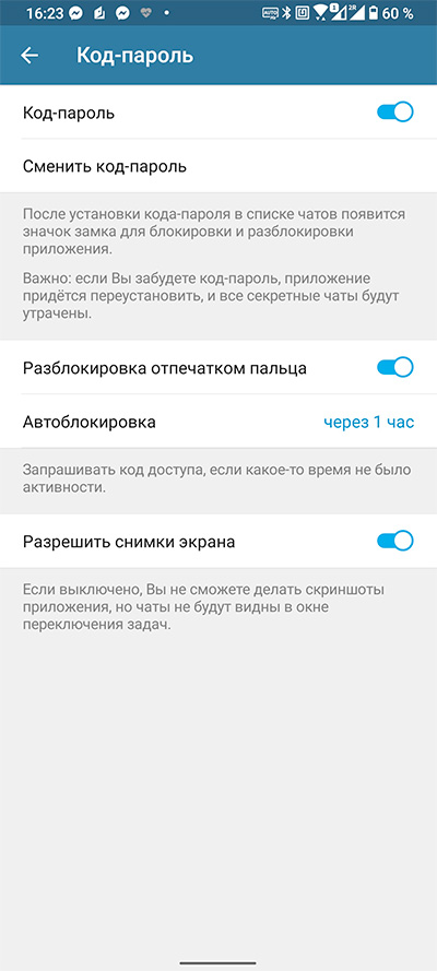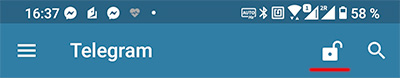 При этом в списке чатов появится значок с замочком. Если на него нажать, то при переключении из Telegram при возврате в него в любом случае запросится код-пароль.
