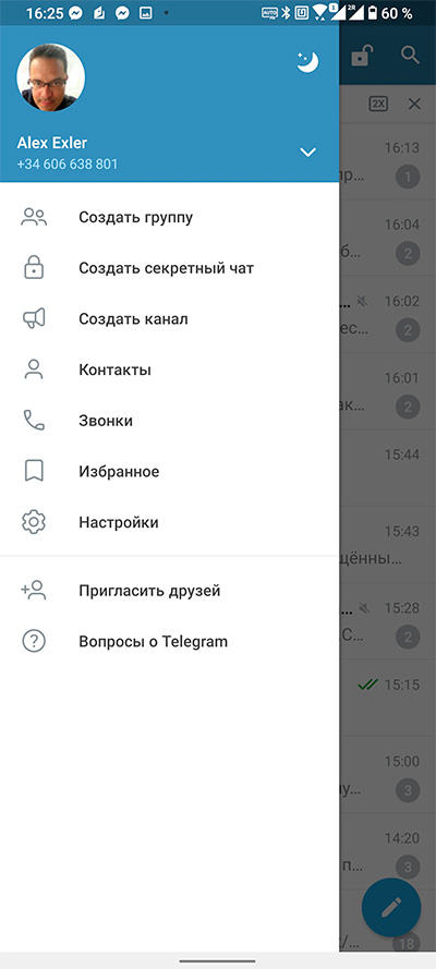 Ночной режим в Telegram включается очень просто. Общее меню и там справа сверху нажать на значок луны. Дневной режим обратно включается там же - при нажатии, конечно же, на значок солнца!