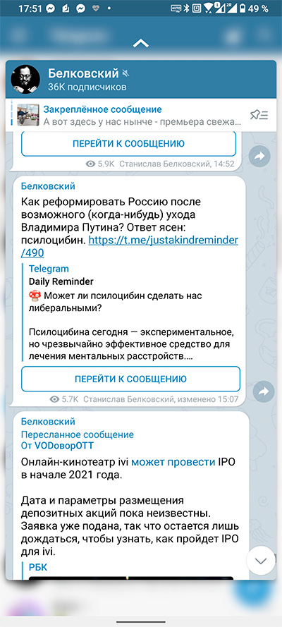 У меня Telegramm давно и скопилось уже под 500 каналов/блогов и в принципе иногда я некоторые читаю, т.е. время от времени могу зайти почитать сразу за год, что человек писал.