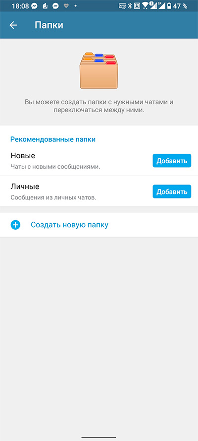 Общее меню - Настройки - Папки. Там можно добавить стандартные папки с новым и личным (левый скриншот), также можно создать свои папки, куда добавляются соответствующие чаты и каналы (правый скриншот). И вот это - очень и очень удобно!