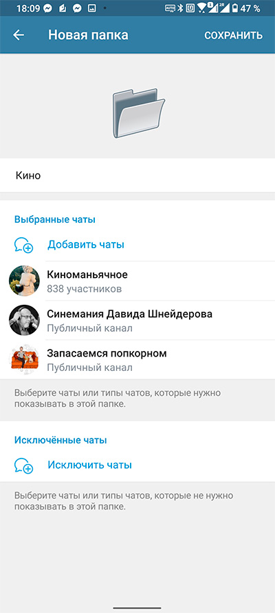 Судя по моим данным, этой возможностью пользуется ничтожное количество пользователей, а между тем это очень важная возможность для удобной группировки чатов/каналов по папкам (они скорее выглядят как вкладки).