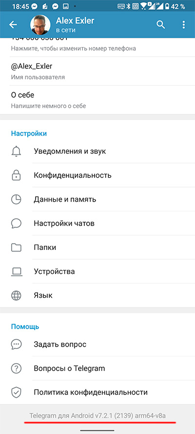 Как получить туда доступ? Открываем общее меню, нам нужна самая нижняя строчка "Telegram для Android".