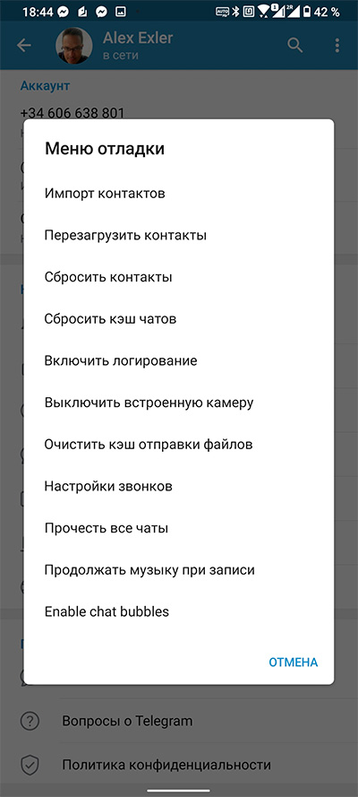 После этого меню будет появляться просто при длинном нажатии на эту строчку. Ну и, разумеется, если вы не знаете, что означает какой-то пункт, то лучше его не вызывать.