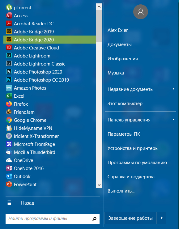 После этого при нажатии на кнопку "Пуск" у вас будет появляться та самая удобная старая система.