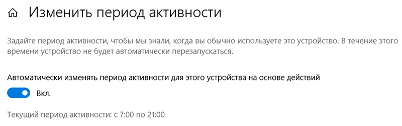 Там в разделе "Изменить период активности" можно задать период, в течение которого Windows не будет автоматически перезагружаться, а будет вас спрашивать, можно ли это сделать, и если нет, то вы можете задать время перезагрузки.