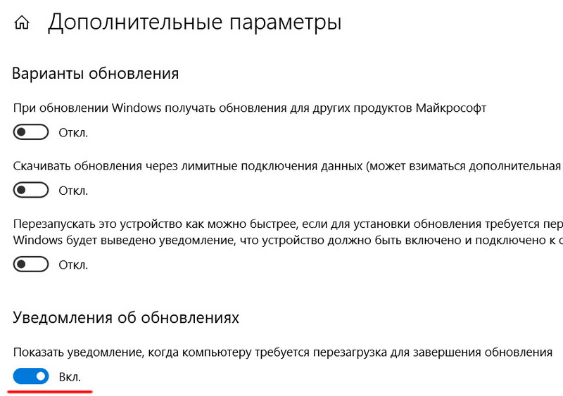 В разделе "Дополнительные параметры" нужно включить "Уведомления об обновлениях".
