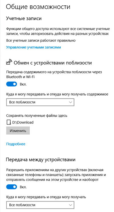 В Windows есть возможность быстрого обмена файлами с устройствами поблизости (находящимися в той же локальной сети или в той же сети Wi-Fi). Это включается в Параметры Windows - Система - Общие возможности