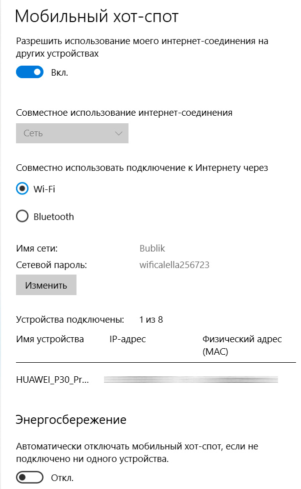После этого компьютер становится хот-спотом: устройства могут к нему подключаться как к точке доступа. Работает совершенно нормально, я проверял.