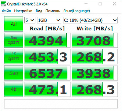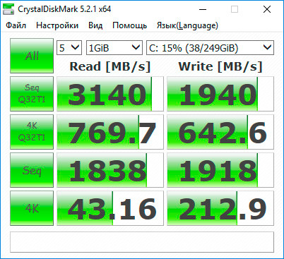 На старом компьютере у Samsung 850 PRO - вот такая скорость.