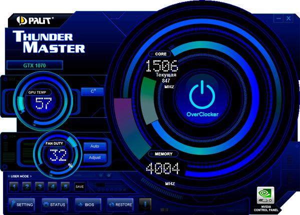 Вот замер карты после десятиминутной игры в последний DOOM на максимальных для данной конфигурации настройках. Температура менее 60 градусов, и кулеры вращаются на 32% от максимальной скорости.