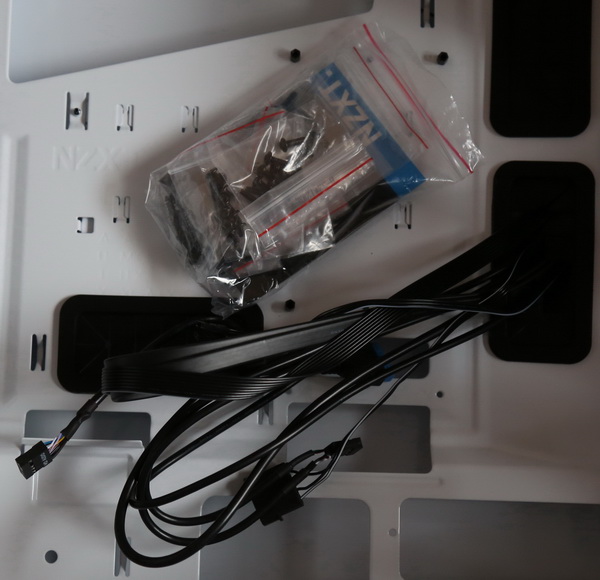 В корпусе выведены провода с колодками для подключения всяких портов, кулеров и переключателей. Также там в обязательном порядке присутствуют пакетики со всяким крепежом и хомутиками.