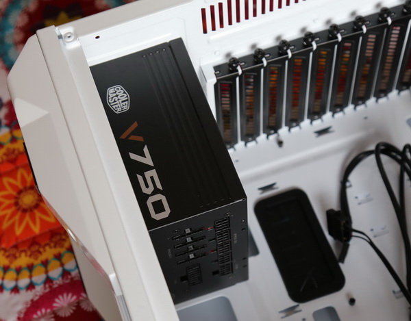 Сначала устанавливаем блок питания. В статье "Собираю компьютер" я писал, что решил взять модель V550 - на 550 Вт. Однако, подумав, решил, что все-таки возьму более мощный блок питания. И дело не в том, что хочется иметь запас по мощности: мало ли что мне придет в голову поставить в компьютер. Дело в том, что у более мощного блока питания значительно реже будет включаться кулер для обдува, а мне крайне важно, чтобы компьютер был практически бесшумный.