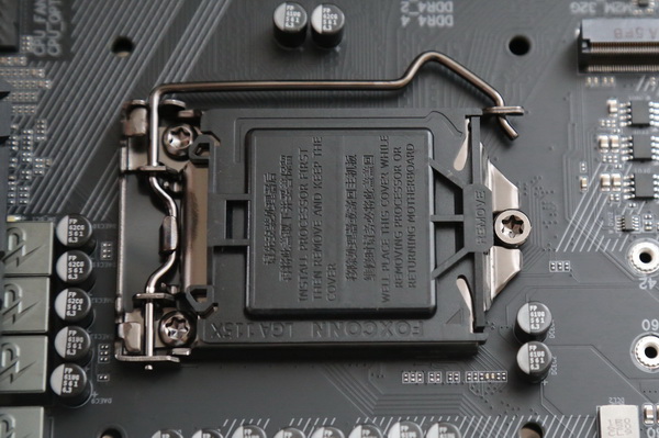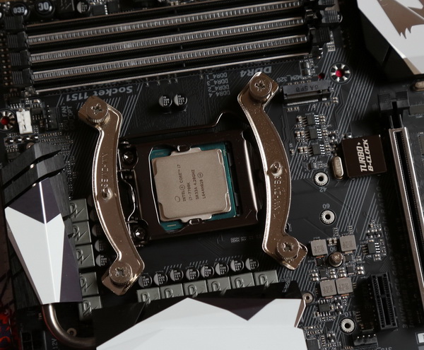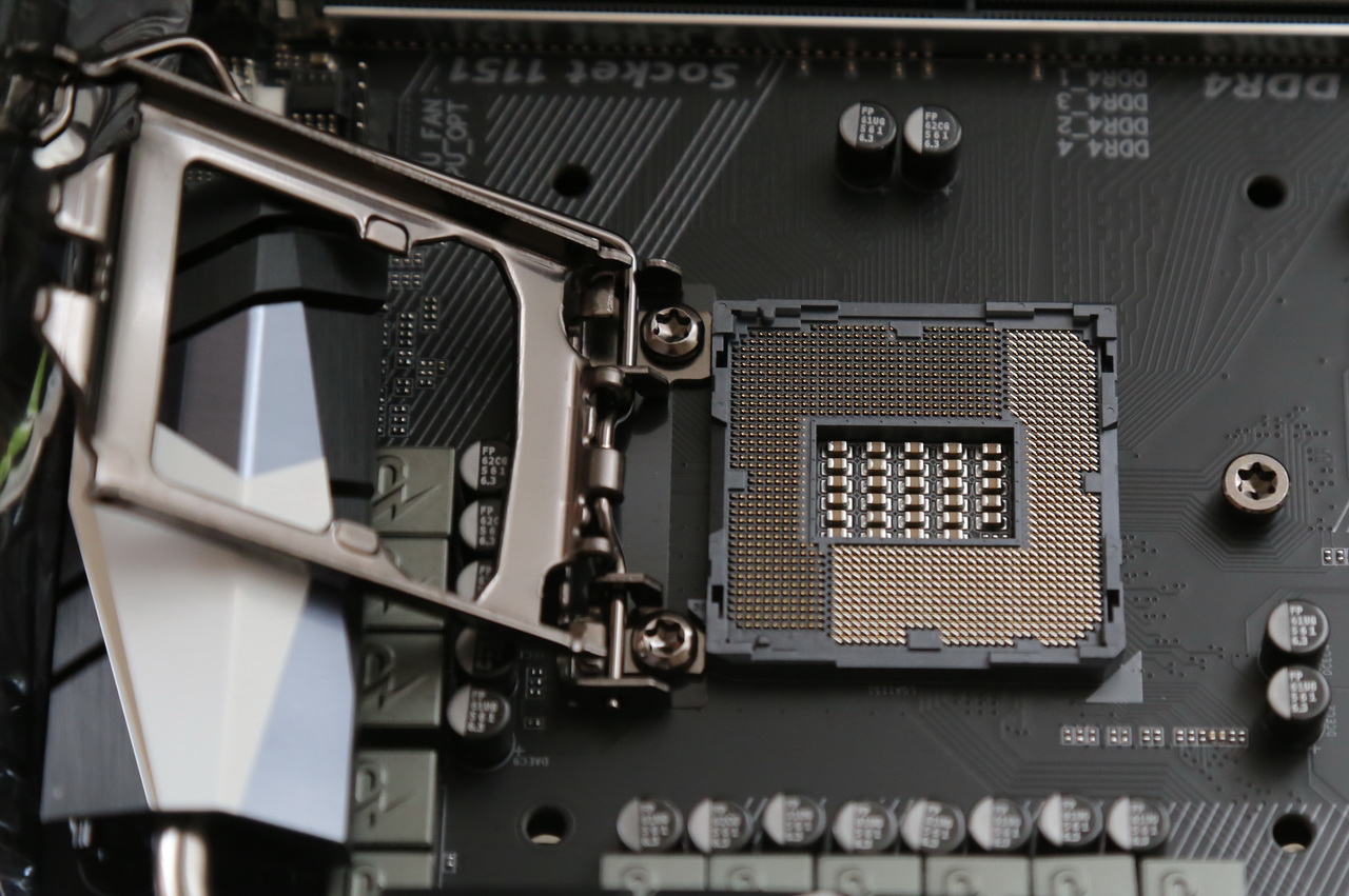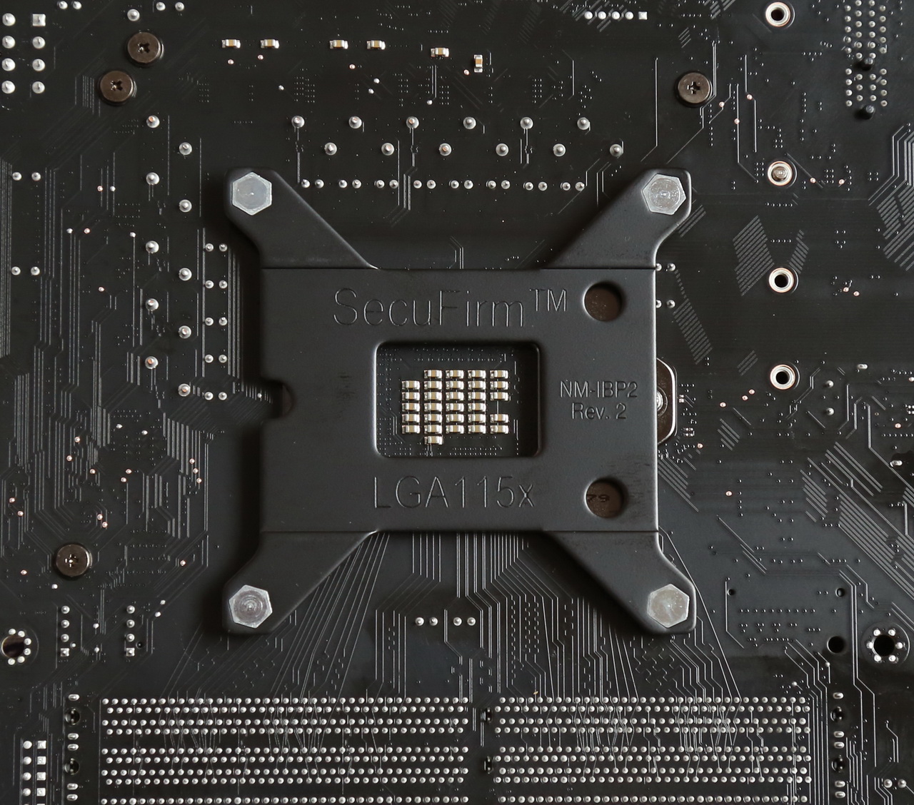 Черная рамка устанавливается на нижнюю часть материнской платы под процессором, а ее стойки проходят через специальные отверстия.