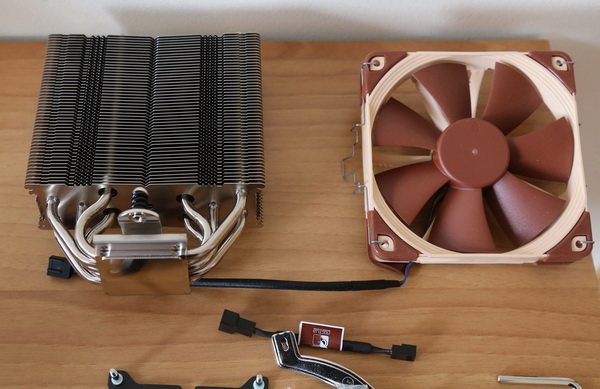 Достаем кулер из коробки. Он состоит из радиатора и съемного вентилятора.
