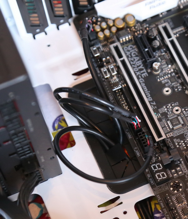 Таким же образом подключаем остальные кабели - аудио, USB, питание кулеров и так далее.