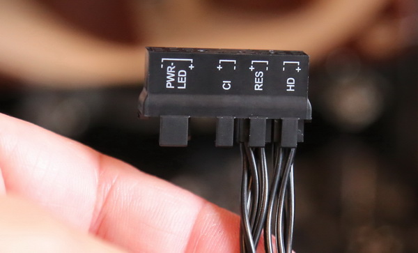 От корпуса идет пучок проводов с головками, которые подключаются к группе контактов на материнской плате - это кнопка питания (там просто замыкаются два контакта), индикатор питания, Reset, индикатор жестких дисков.