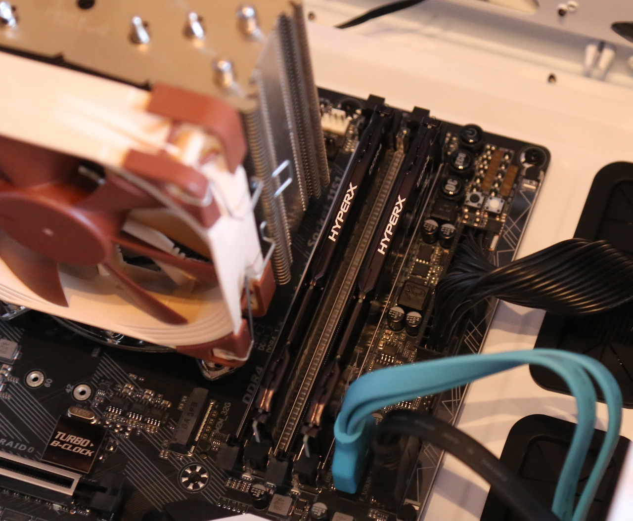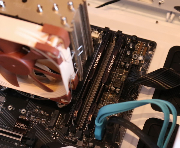 aag: Кстати, у меня процессорный кулер идентичен по конструктиву, и точно также нависает над памятью. Чтобы поставить память, нужно снять вентилятор, вставить плашки, потом навесить обратно. Плашки по высоте проходят, хотя зазор очень небольшой.