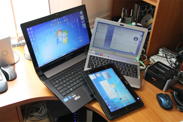 Давно прошли те времена, когда один компьютер делился между десятками и даже сотнями пользователей. Сейчас, при нынешней реальной дешевизне всяких нетбуков, нередко бывают случаи, когда один человек имеет два и даже более компьютеров - как правило, это обычный персональный (стационарный) компьютер, переносной нетбук, ноутбук или субноут (у кого на что хватает денег), ну и коммуникатор, который, по сути, - тот же компьютер.